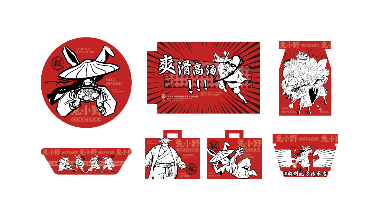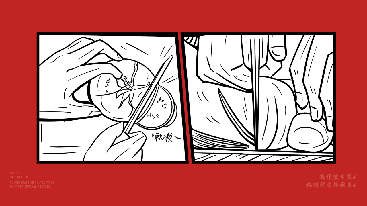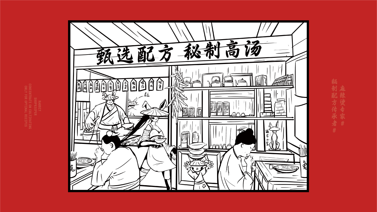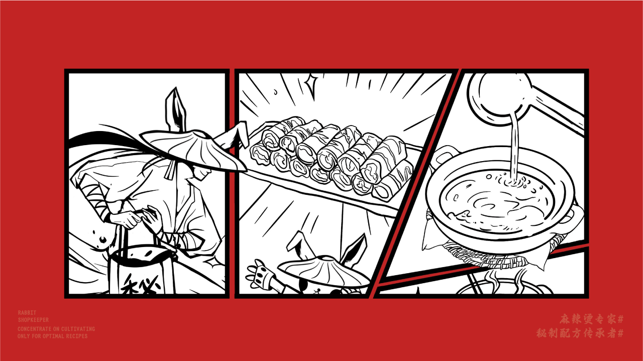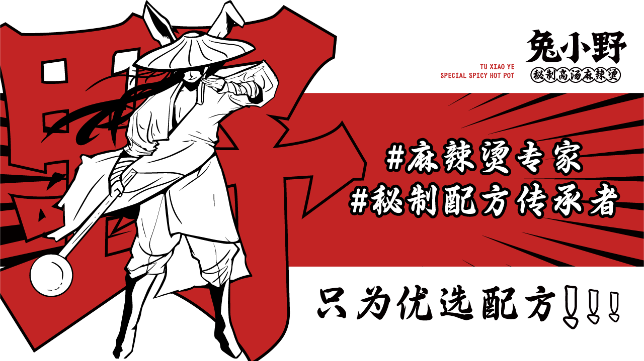 中式麻辣烫与江湖风格的创新融合,以兔子拟人化作为IP打造差异化,并将“秘制配方"作为核心卖点,希望给消费者传达一种更具武侠江湖风味的麻辣烫品牌形象。