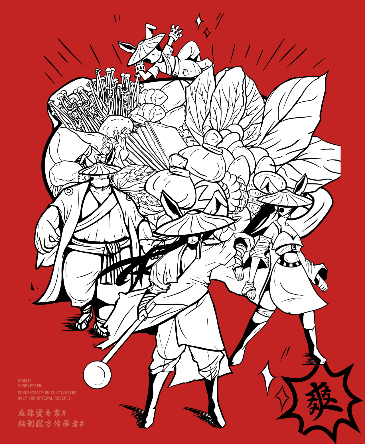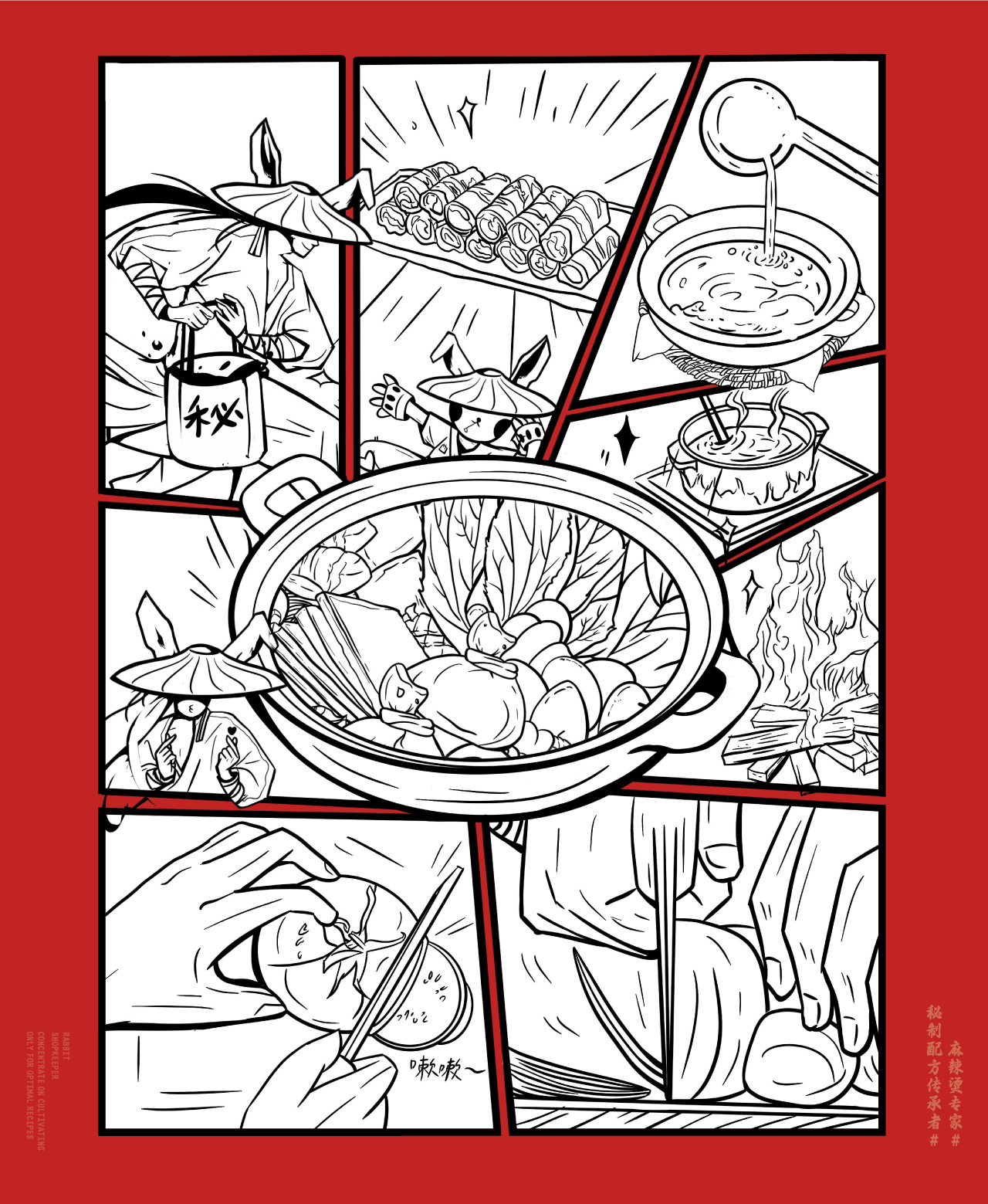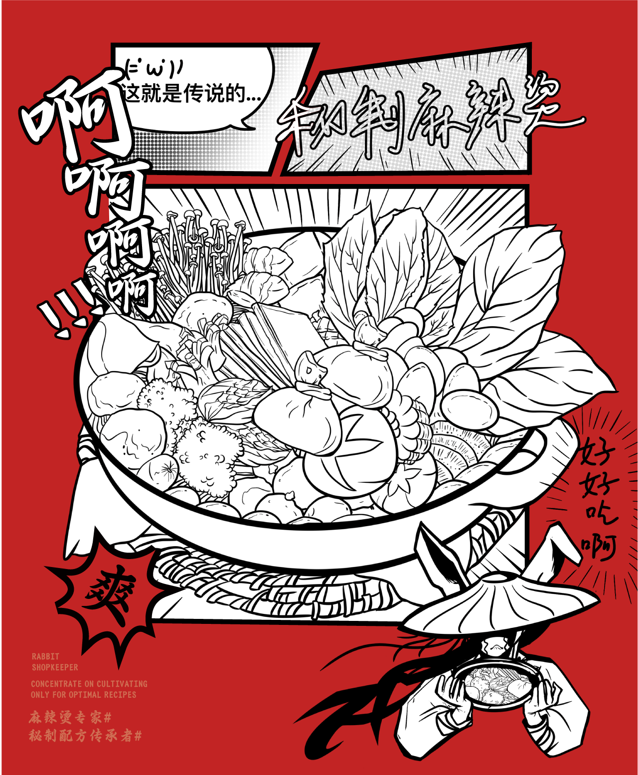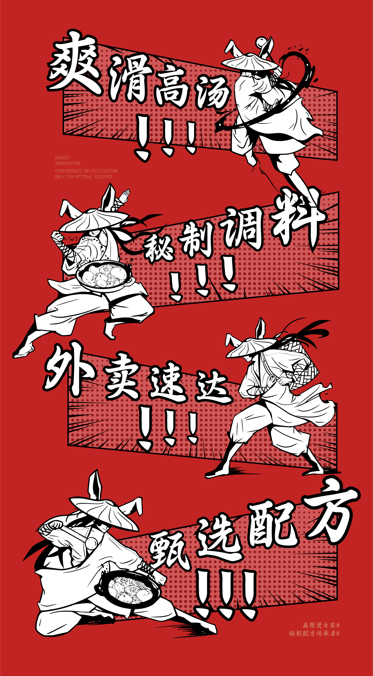 中式麻辣烫与江湖风格的创新融合,以兔子拟人化作为IP打造差异化,并将“秘制配方"作为核心卖点,希望给消费者传达一种更具武侠江湖风味的麻辣烫品牌形象。