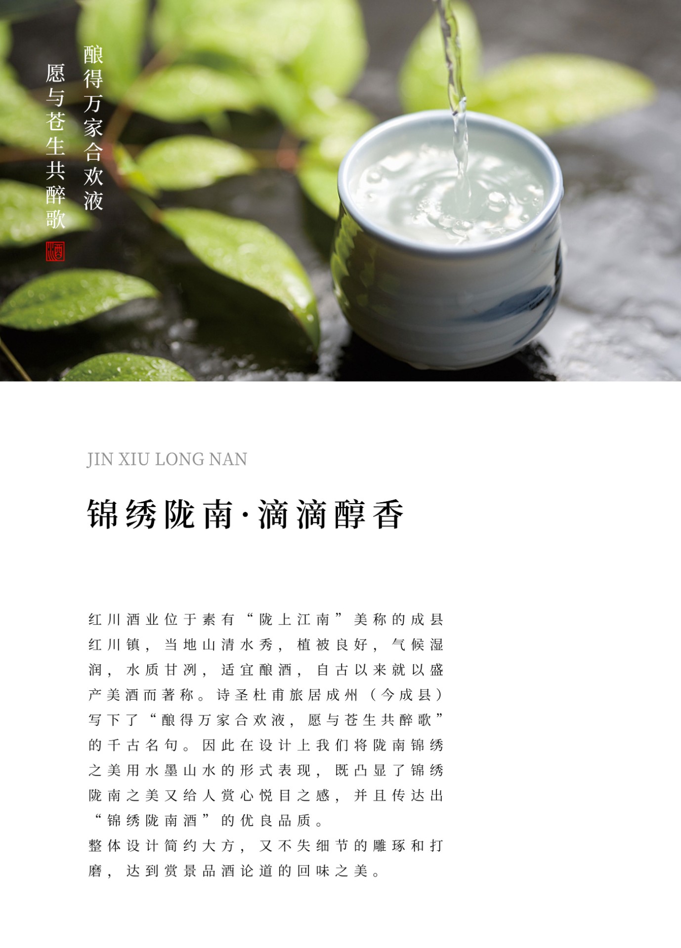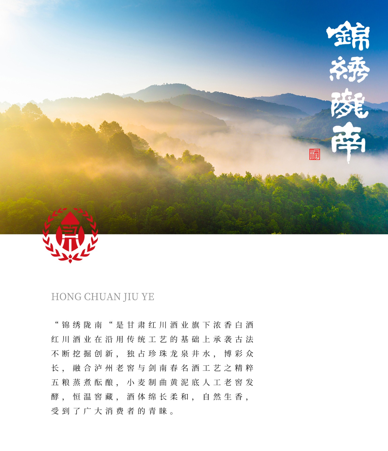 66锦绣陇南“是甘肃红川酒业旗下浓香白酒,红川酒业在沿用传统工艺的基础上承袭古法不断挖掘创新,独占珍珠龙泉井水,博彩众长,融合泸州老窖与剑南春名酒工艺之精粹五粮蒸煮酝酿,小麦制曲黄底人工老发酵,恒温窖藏,酒体绵长柔和,自然生香,受到了广大消费者的青睐。