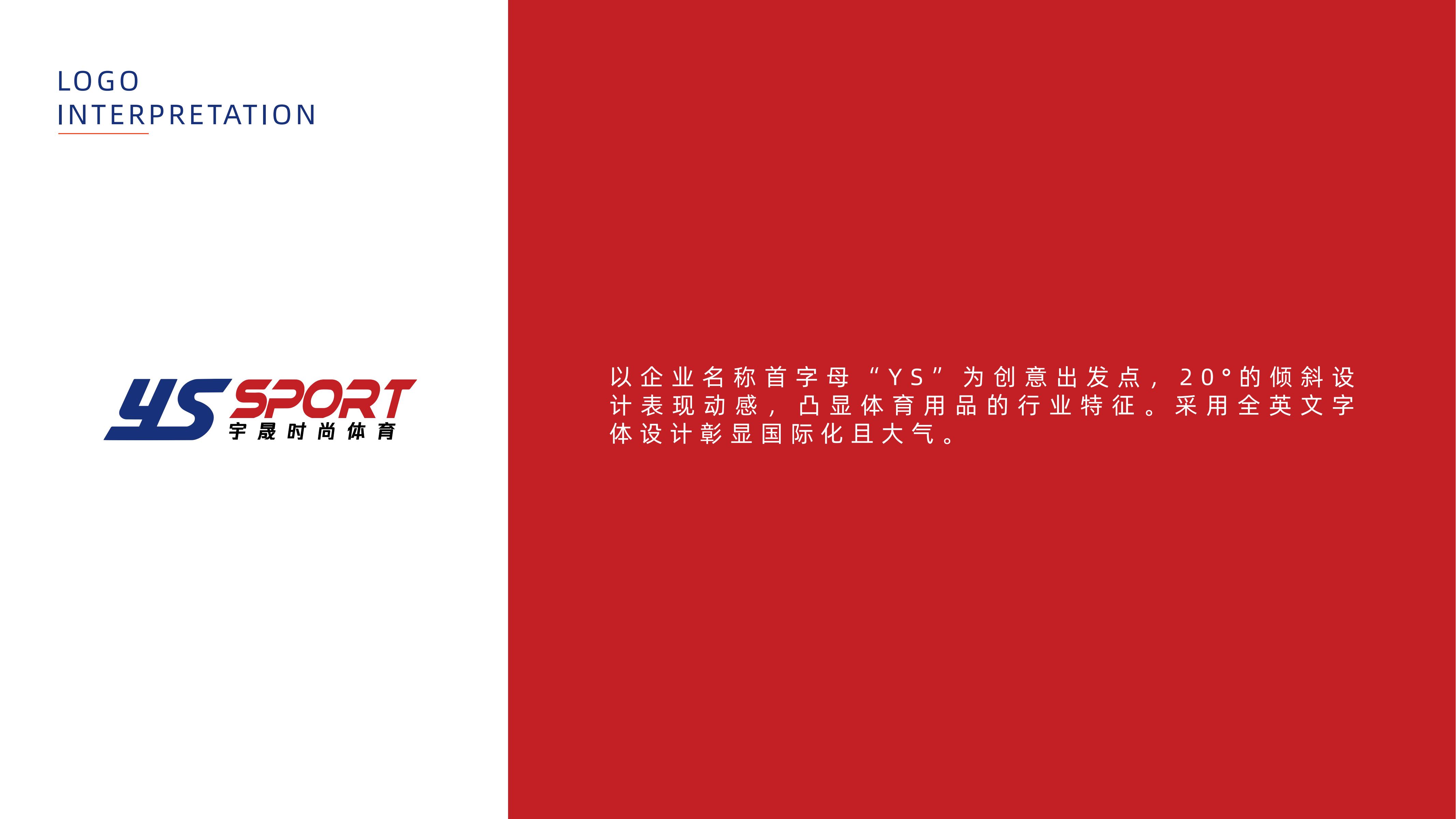 以企业名称首字母“YS”为创意出发点,2 0°的倾斜设计表现动感,凸显体育用品的行业特征 。采用全英文体设计彰显国际化且大气。