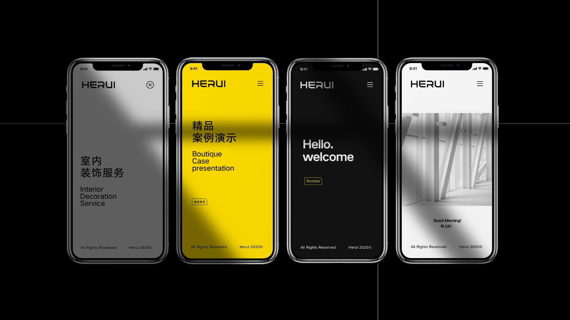 字母与中文字体,进行了严格的规范设计。每个笔画每个细节都经过仔细缜密的比例设计,精确到毫米级别的设计,彰显和瑞装饰的品牌态度与主张,对品质的极致追求尽善尽美。