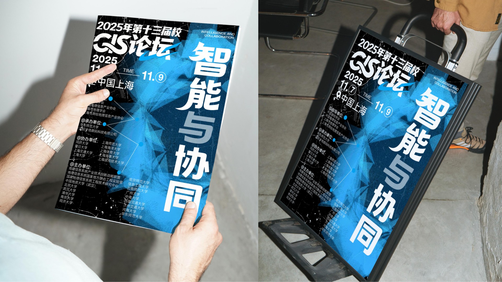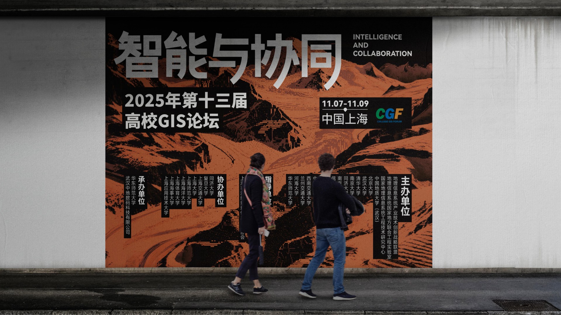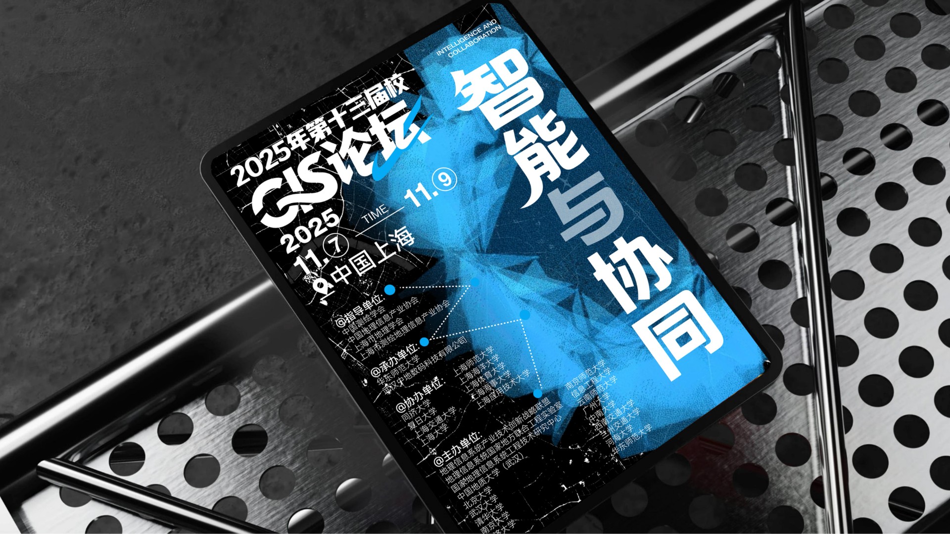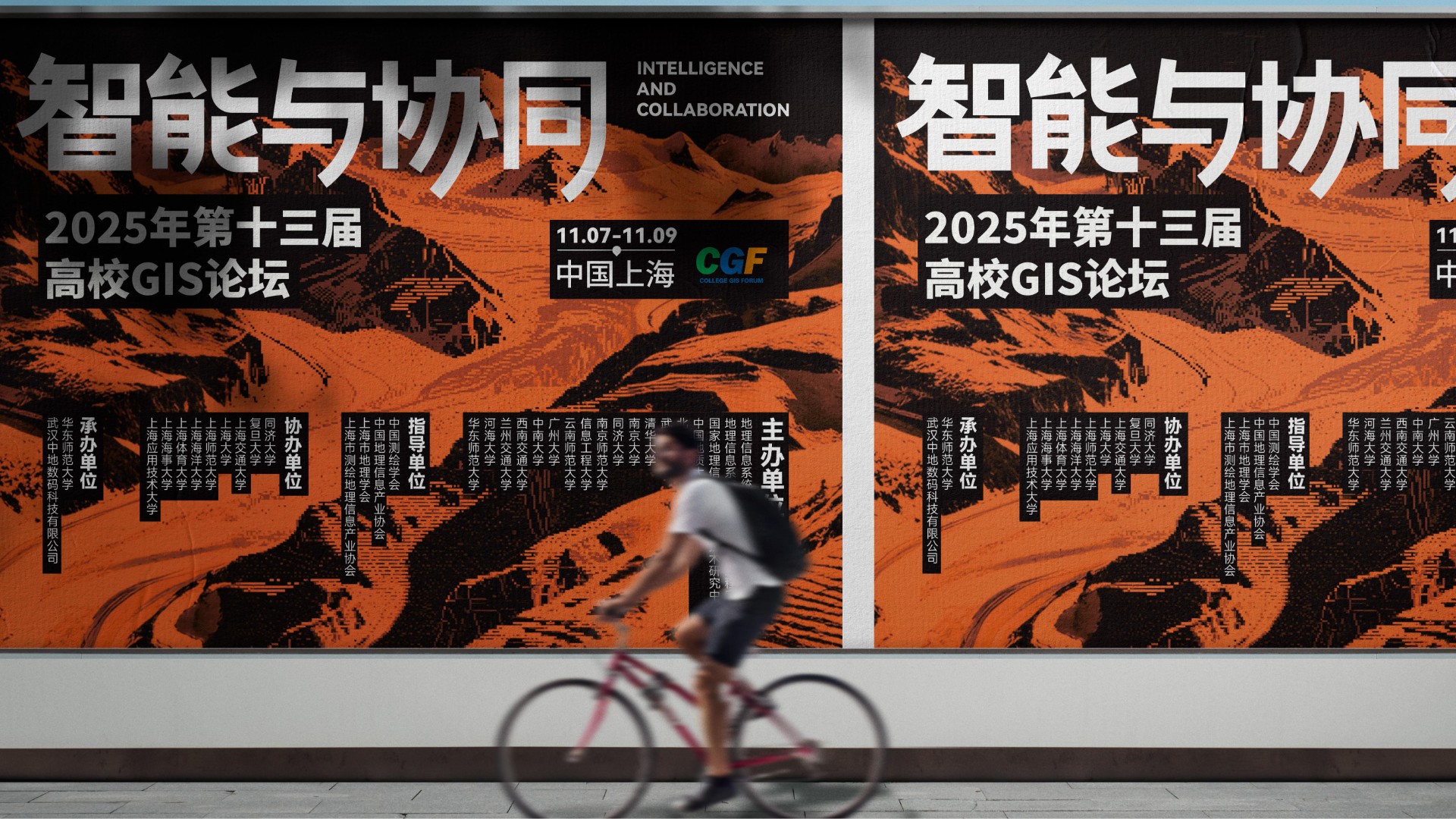 2025年第十三届高校GIS论坛主KV设计以"智能与协同"为核心主题,深度契合地理信息产业智能化升级与多领域融合的发展趋势。设计通过现代科技感的视觉表现,突出展现AI技术与空间数据的创新结合,强调产学协同与跨领域资源整合的行业动向。主视觉系统不仅承载着提升会议专业形象的重要使命,更致力于打造具有高度识别性的品牌符号,为会议宣传、数字传播、会场导视等全场景应用提供强有力的视觉支撑,有效传递中国地理信息产业的前沿发展与创新活力。
