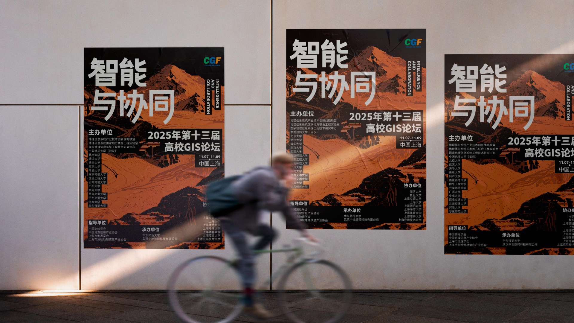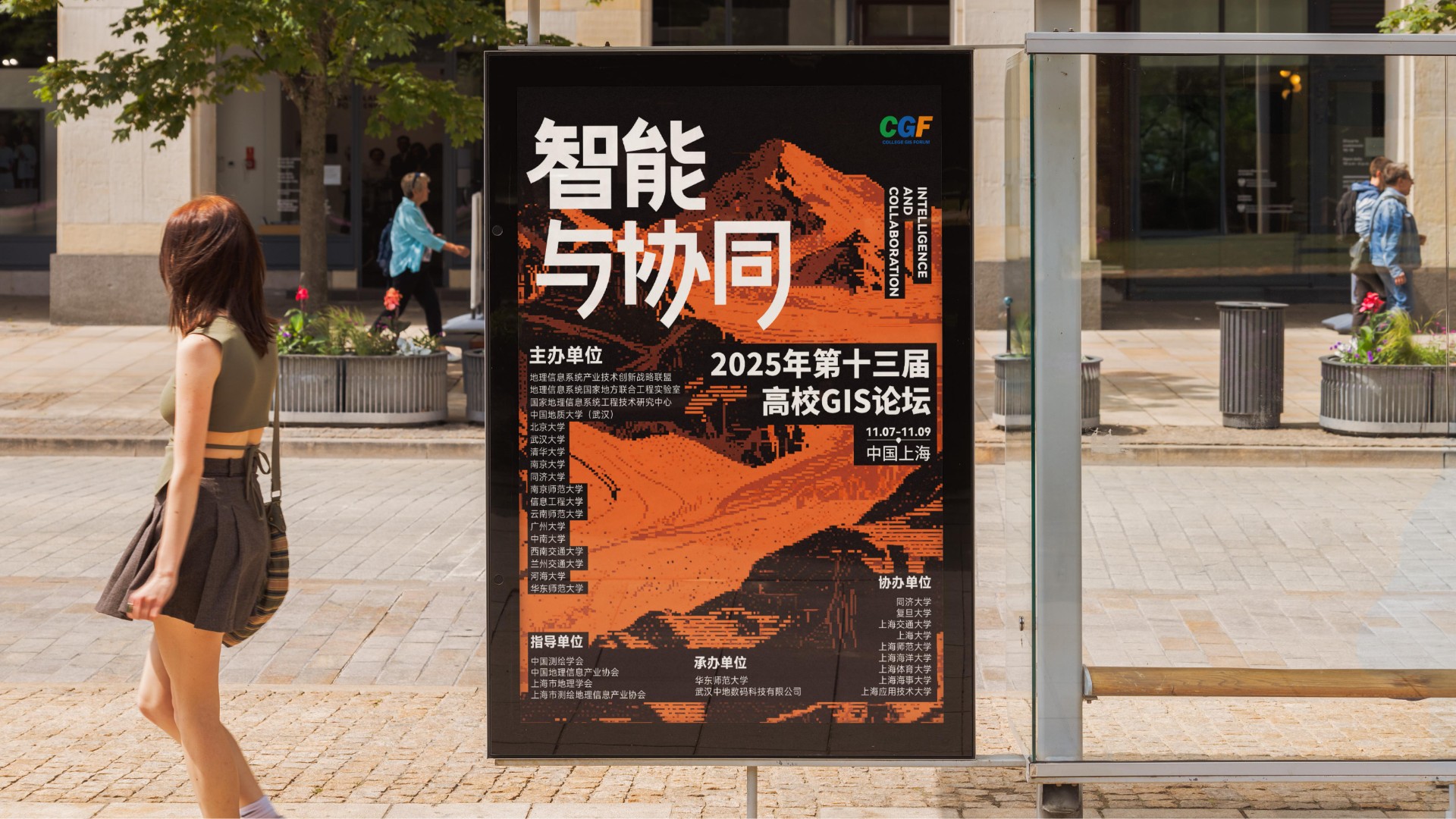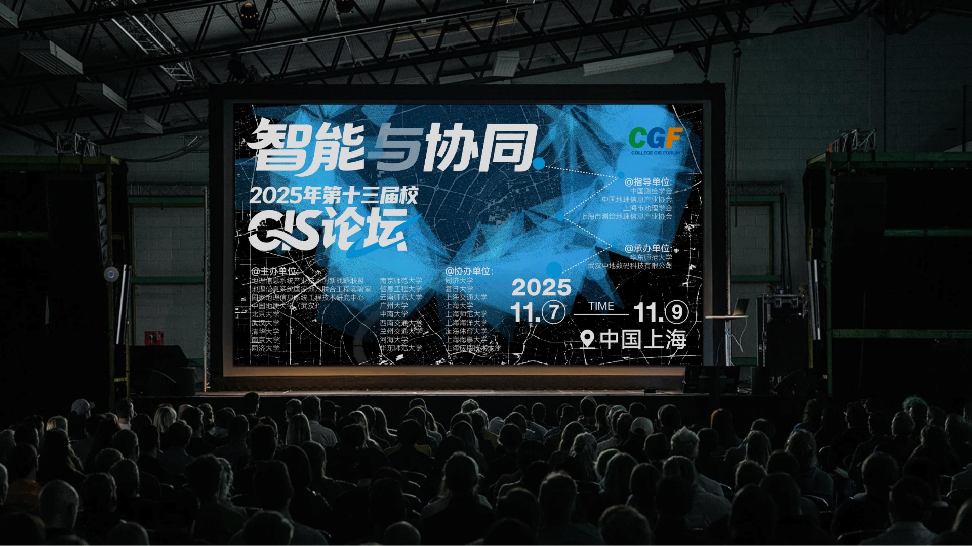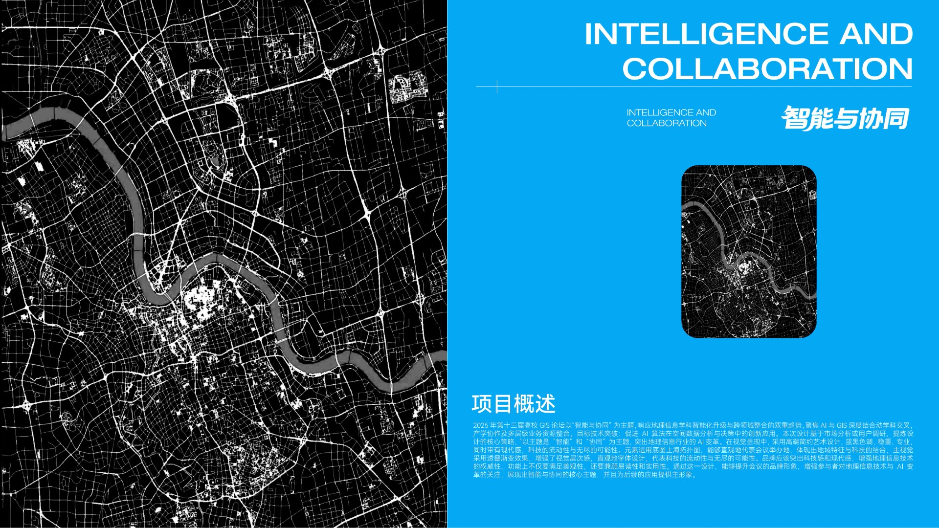 2025年第十三届高校GIS论坛主KV设计以"智能与协同"为核心主题,深度契合地理信息产业智能化升级与多领域融合的发展趋势。设计通过现代科技感的视觉表现,突出展现AI技术与空间数据的创新结合,强调产学协同与跨领域资源整合的行业动向。主视觉系统不仅承载着提升会议专业形象的重要使命,更致力于打造具有高度识别性的品牌符号,为会议宣传、数字传播、会场导视等全场景应用提供强有力的视觉支撑,有效传递中国地理信息产业的前沿发展与创新活力。